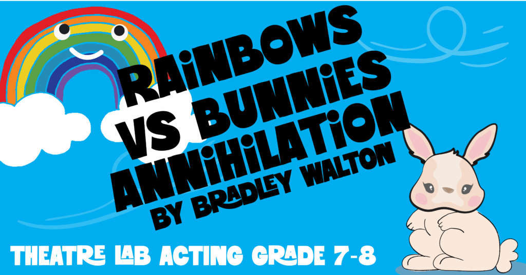 “Aaron is failing history and feeling under pressure. One day in the park he meets a talking bunny — and then a talking rainbow shows up. Both are determined to cheer him up”. Theatre Lab is a wonderful class for students who want to work on character study and performance techniques and this fairly odd show is the perfect vehicle! Appropriate for first time and long-time participants.