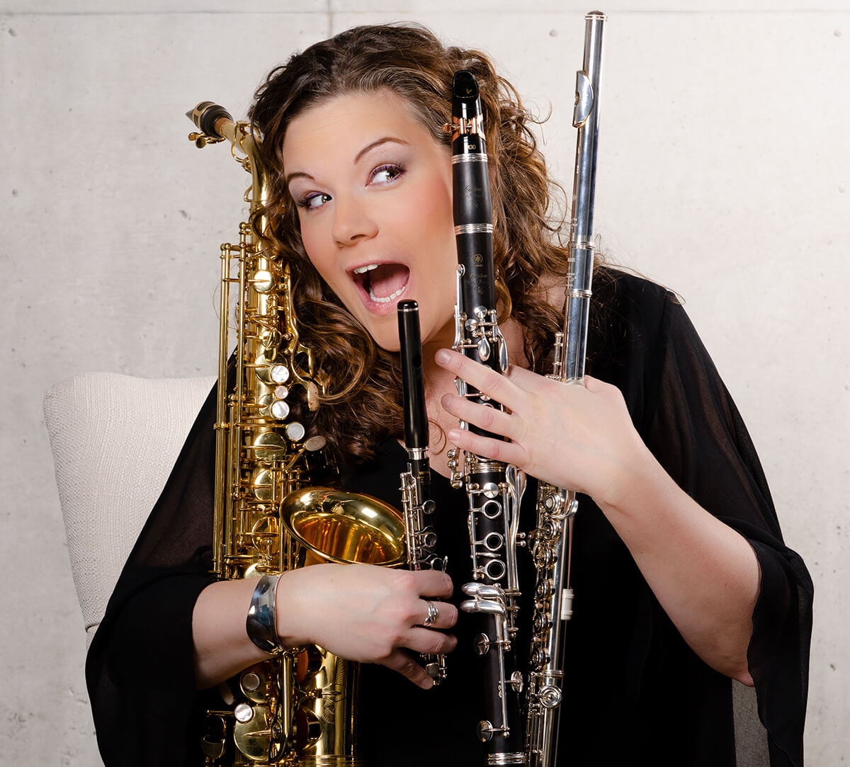 Michele Jacot (clarinet, flute, saxophone) performs regularly in pit orchestras, symphony orchestras, chamber ensembles and as a soloist, in addition to teaching privately, adjudicating and conducting. She is a Yamaha Canada Spotlight Artist, and an Artist at Vandoren, Paris, France. Born and raised in Toronto, Michele holds a Bachelor of Music in Performance from the University of Toronto and a Master of Music in Performance from Northwestern University in Chicago.